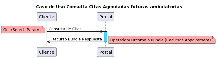 - Cliente genera una operación GET al tipo de recurso Appointment y los parámetros adecuados.